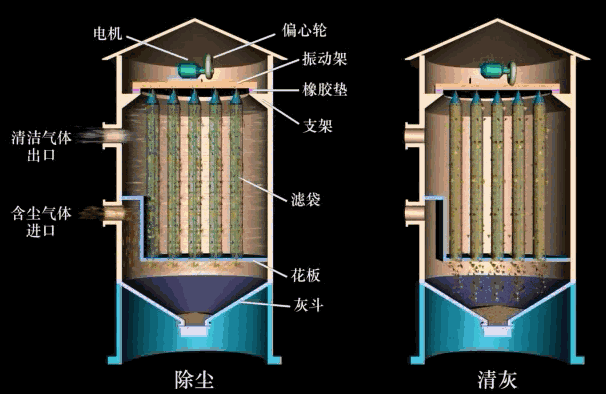 除塵器運(yùn)行一段時(shí)間后,除塵布袋內(nèi)表面捕集的粉塵層增厚,除塵器的運(yùn)行阻力上升,當(dāng)增加至一定值后,這就需要對(duì)除塵布袋進(jìn)行清灰,即通過(guò)外力將除塵布袋內(nèi)表面上附著的粉塵清除掉,使除塵器的運(yùn)行阻力下降,阻力下降到一定值后,該室布袋又投入正常運(yùn)行。