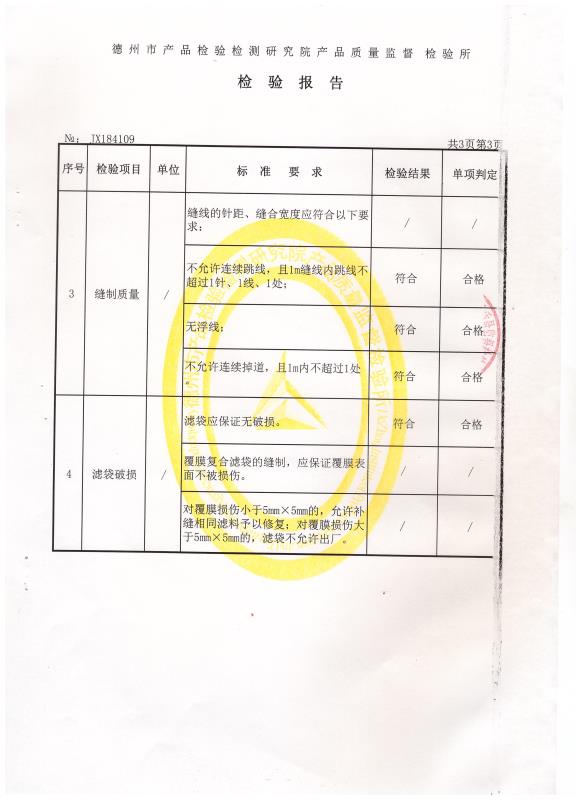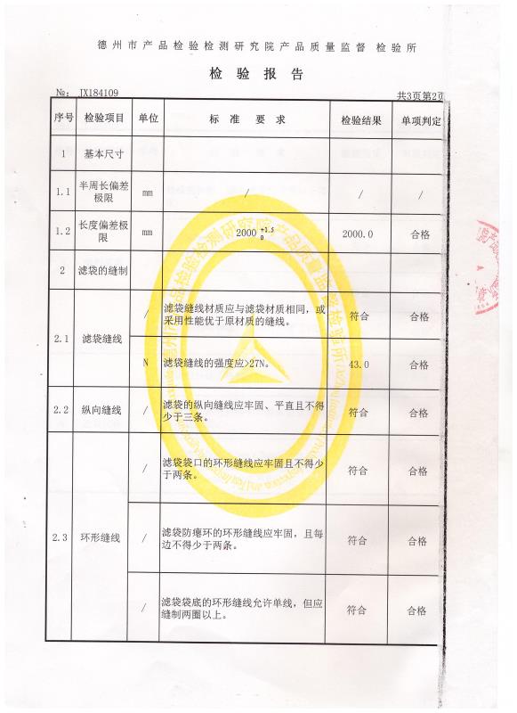 除塵布袋檢驗(yàn)報(bào)告