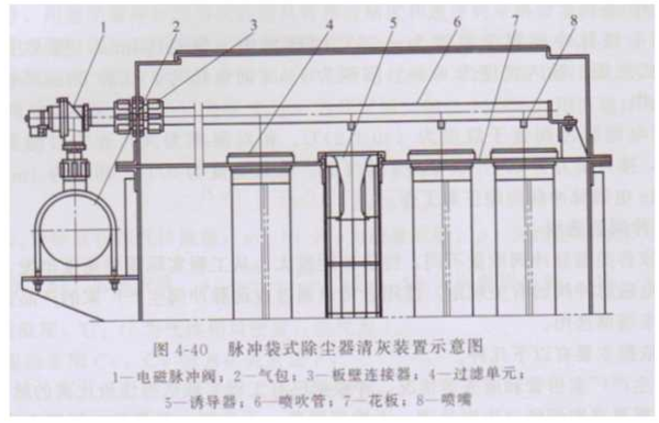 脈沖除塵器是在布袋除塵器的基礎(chǔ)上改進的新型高效脈沖除塵器,綜合了分室反吹各種脈沖噴吹除塵器的優(yōu)點。脈沖除塵器隨著過濾時間的延長,除塵布袋上的粉塵層不斷積厚,除塵設(shè)備的阻力不斷上升,當(dāng)設(shè)備阻力上升到設(shè)定值時,清灰裝置開始進行清灰。脈沖布袋除塵器清灰裝置說明如下。